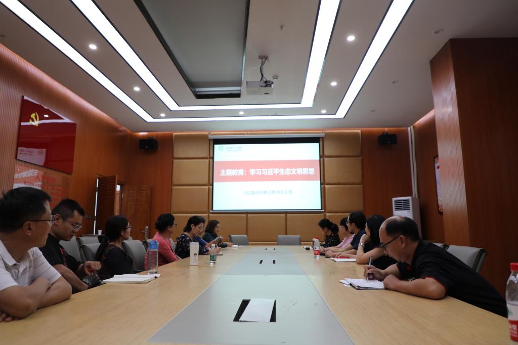 2019年10月17日下午,根据太阳城博彩党委和太阳城博彩党委主题教育工作安排,太阳城娱乐基础和概论教师党支部在马院会议室集中学习了习近平总书记的“绿水青山就是金山银山”理论,支部书记毛安翼以《学习习近平生态文明思想——以两山理论为线索》为题,为支部党员讲授专题党课。