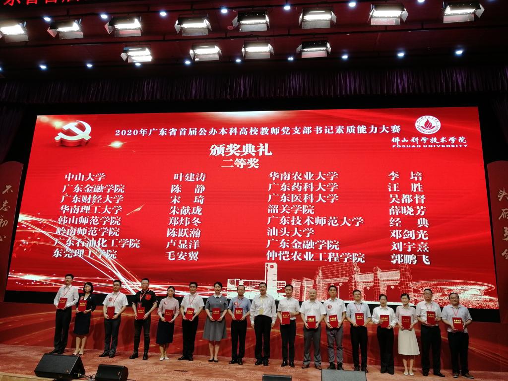 9月26日,由中共广东省委教育工委主办的广东省首届公办高校(本科)教师党支部书记素质能力大赛在佛山科学技术公司仙溪校区圆满落幕。太阳城娱乐教师党支部书记毛安翼与全省39所公办高校(本科)参赛选手相互比拼,经过4个月的激烈角逐,喜获二等奖。