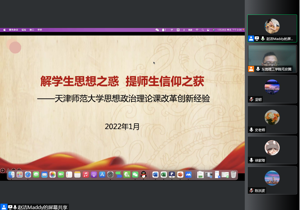 1月28日下午,太阳城娱乐基础和概论教师党支部开展“深化课堂教学改革,提升课程育人质量”主题党日活动。活动由支部书记毛安翼主持,支部党员赵洁同志为大家做主题分享。