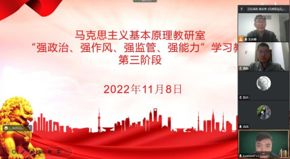11月4、5、8日,马克思主义基本原理教研室在马院315会议室或腾讯会议举行了三阶段的“强政治、强作风、强监管、强能力”主题教育活动。教研室全体教师积极参加这次活动,老师们分别汇报了各自对习近平总书记关于办好思政课的系列重要讲话的心得体会,并结合自己的教学科研工作进行了深入、热烈的讨论。