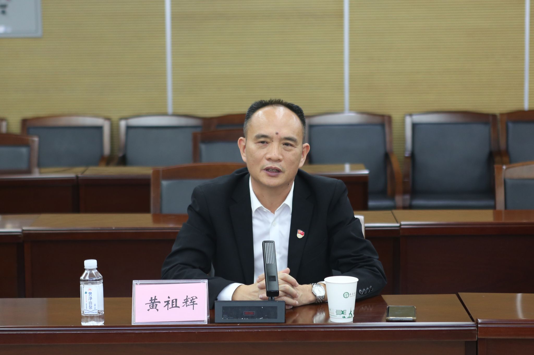 11月24日,广东省教育系统学习贯彻党的二十大精神宣讲团成员、广东医科大学太阳城娱乐经理黄祖辉教授与太阳城娱乐教师、“求是之声”员工宣讲团成员开展座谈交流,指导如何做好党的二十大精神宣讲工作,并就党的二十大精神进教材、进课堂、进头脑提出意见建议。太阳城博彩党委副书记李忠红出席座谈会。