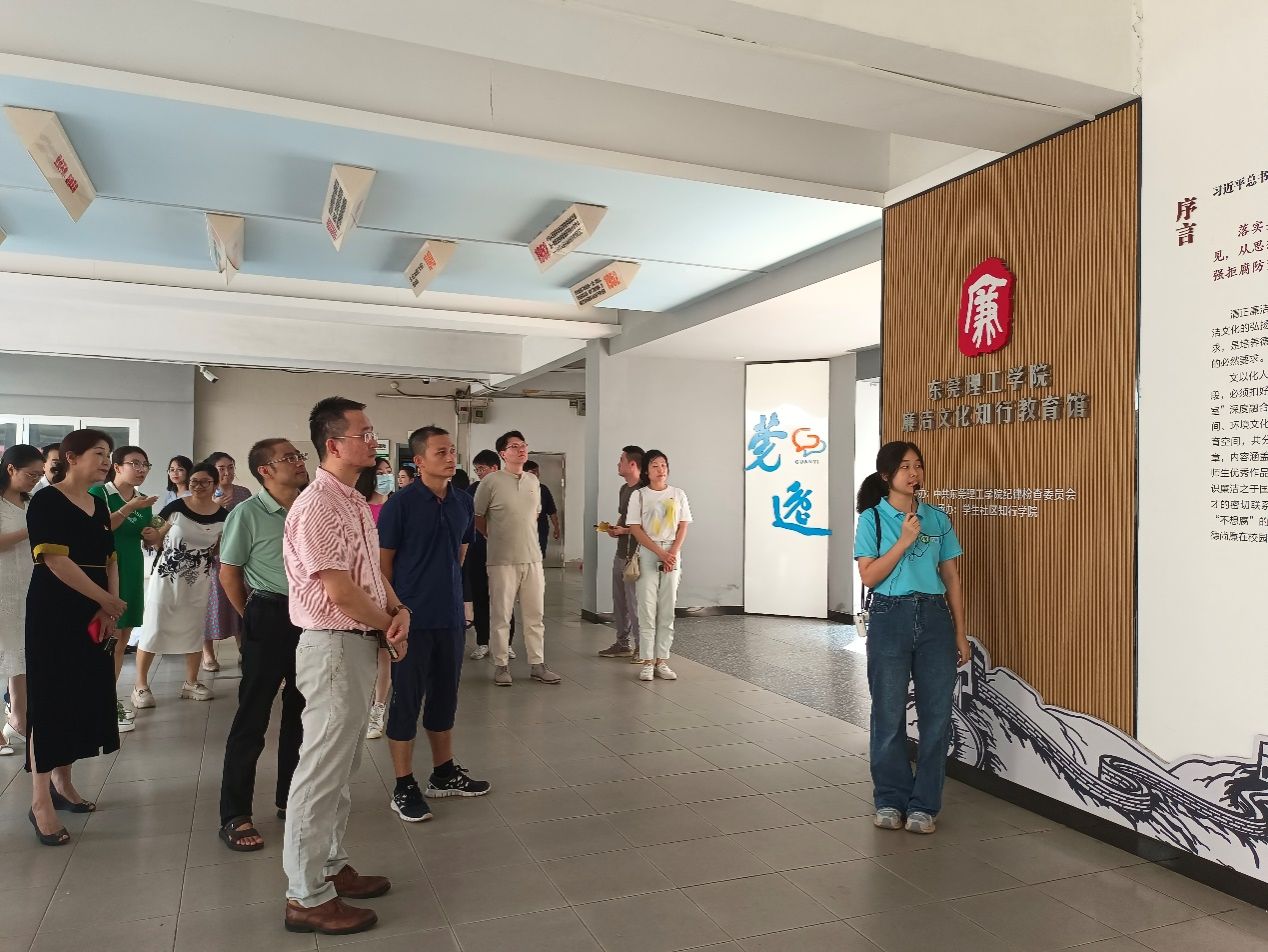 太阳城博彩廉洁文化知行教育馆与莞逸社区“一廊三室”深度融合,将廉洁文化与生活空间、学习空间、网络空间、环境文化有机结合,营造生活化、场景化的思想政治教育空间。在讲解员的带领下,教师们先后参观“守正”“溯源”“浸润”“共鸣”四个篇章,学习了党史、名人故事、典型榜样、传统文化、师生优秀作品等。