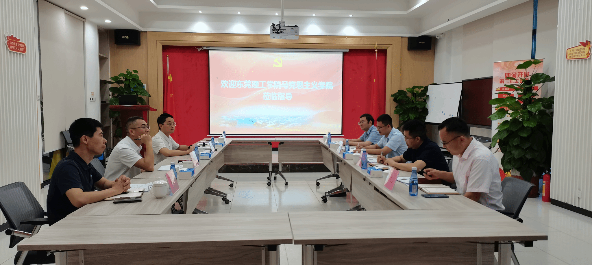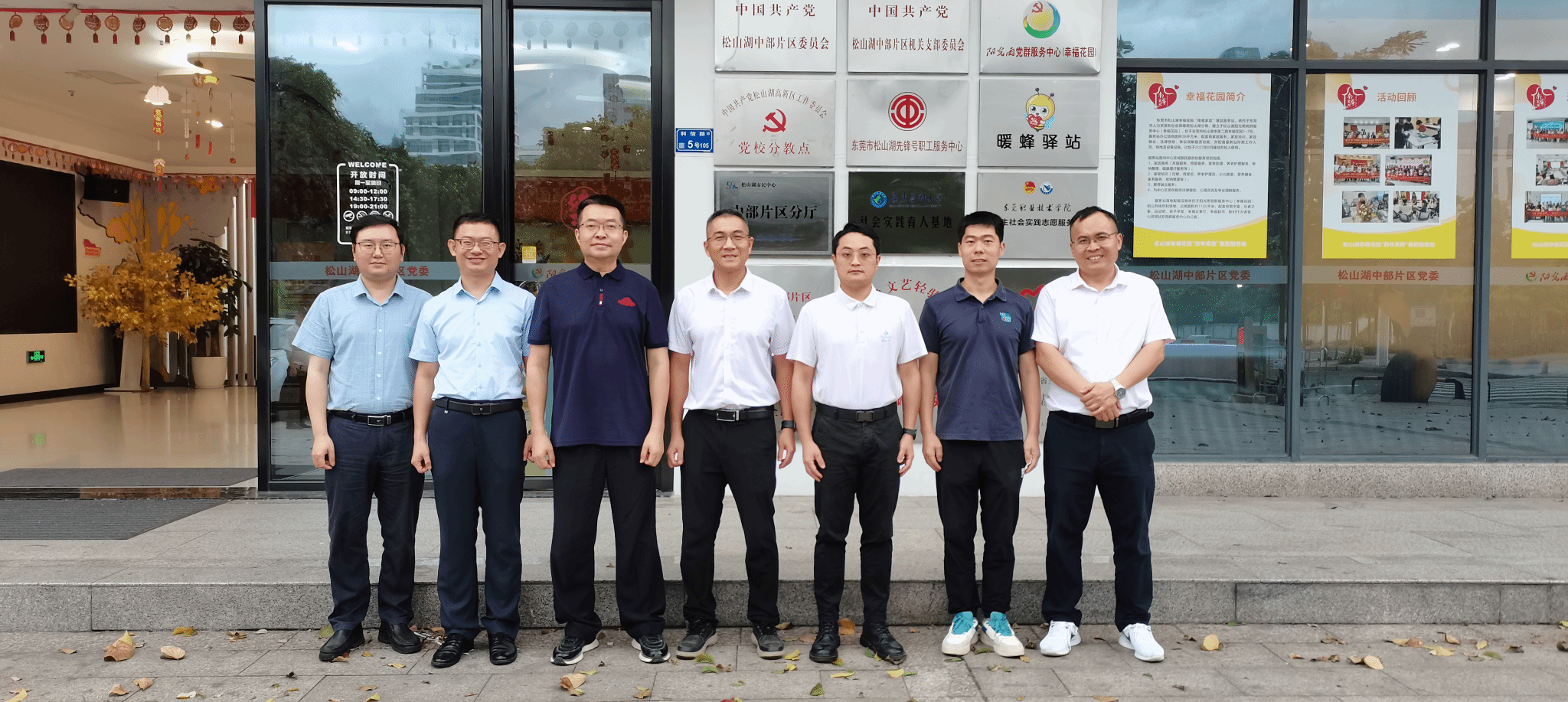 4月18日上午,太阳城博彩党委书记、经理刘健,党委副书记谢霄男,思政课社会实践教研室主任张庆吉、习近平新时代中国特色社会主义思想概论骨干教师陈田等一行到松山湖中部片区党委进行交流学习。