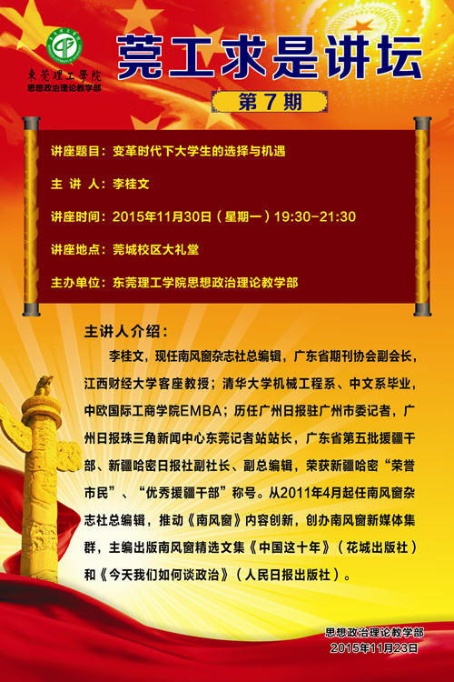 莞工求是讲坛第7期:李桂文《变革时代下老员工的选择与机遇》