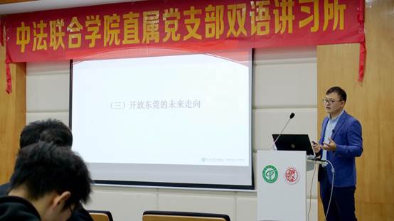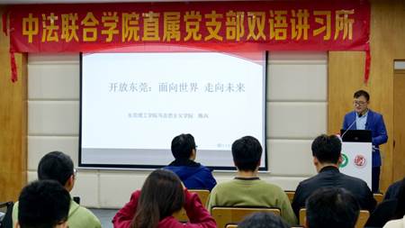 12月10日晚上7点,在莞城校区图书馆4楼中法公司学术报告厅,陈兵博士为中法联合公司的入党积极分子做题为“开放东莞:面向世界,走向未来”的课程思政专题讲座。
