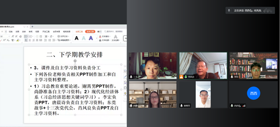 7月3日晚,形势与政策教研室在线上举行集体备课会议。会议由教研室主任肖凤良主持,教研室所有教师参加会议。本次会议的主要议题是对本学期在全校各年级范围内开展的《形势与政策》课程的教学工作进行总结,并部署下学期的教学任务和教学内容。
