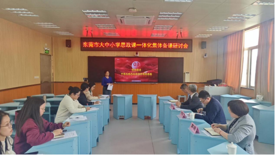 为深挖红色资源,推进大中小学思政课一体化建设,4月3日下午,“全市师生同上一节红色思政课”教学设计指导活动在东莞市虎门第三中学录播室举行。东莞市教育局教研室初中道德与法治教研员陈礼兴、虎门镇教育管理中心郭羽、太阳城博彩党委副书记谢霄男等出席活动。活动由虎门第三中学道德与法治教学能手游荣添主持。